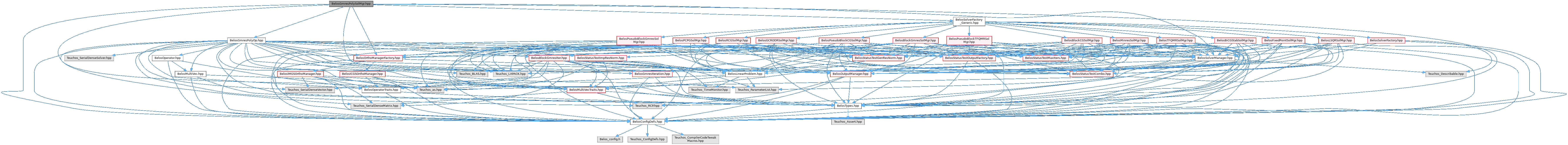 Declaration and definition of Belos::GmresPolySolMgr (hybrid block GMRES linear solver).