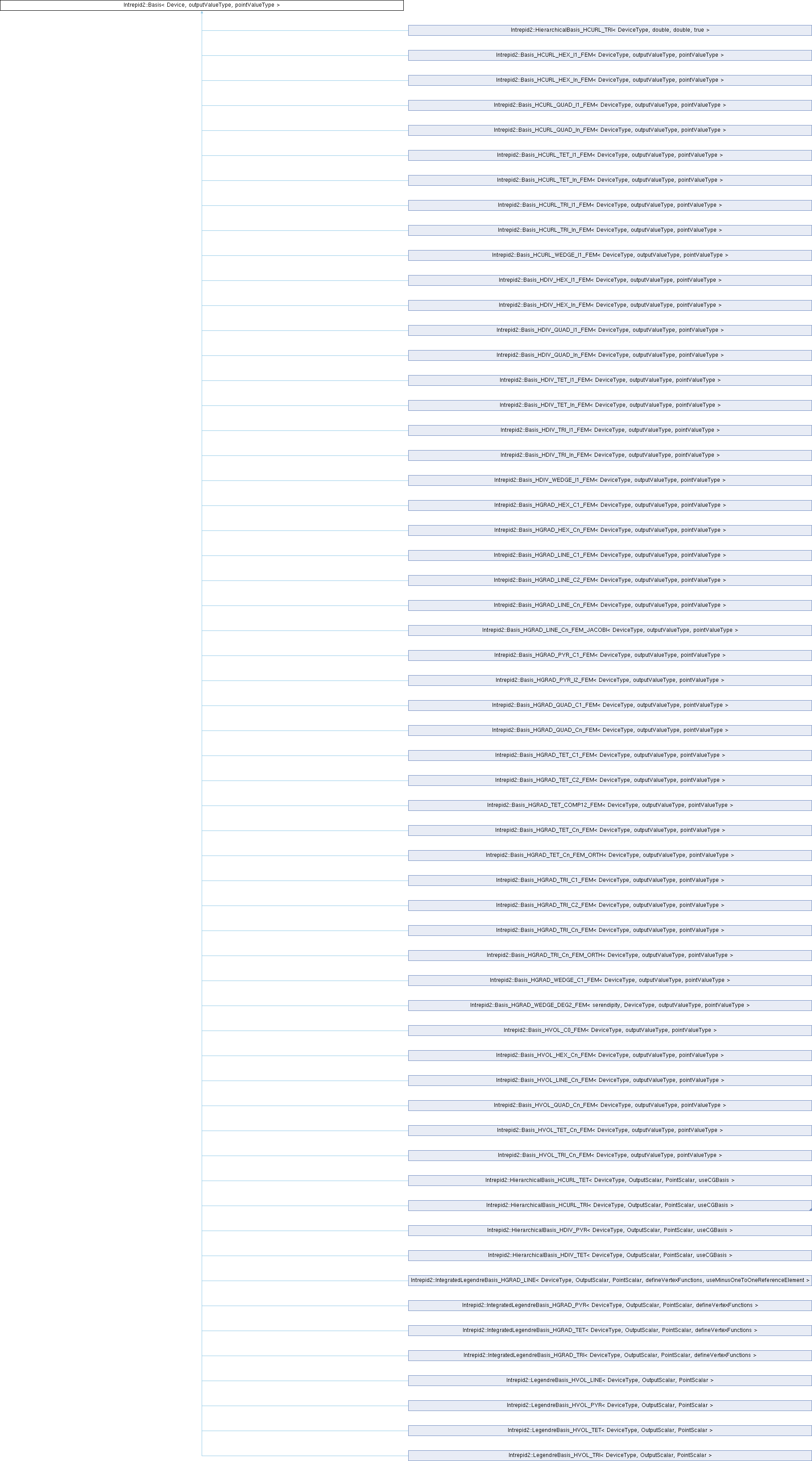 Reimplemented in Intrepid2::Basis_HCURL_HEX_I1_FEM< DeviceType, outputValueType, pointValueType >, Intrepid2::Basis_HCURL_HEX_In_FEM< DeviceType, outputValueType, pointValueType >, Intrepid2::Basis_HCURL_QUAD_I1_FEM< DeviceType, outputValueType, pointValueType >, Intrepid2::Basis_HCURL_QUAD_In_FEM< DeviceType, outputValueType, pointValueType >, Intrepid2::Basis_HCURL_TET_I1_FEM< DeviceType, outputValueType, pointValueType >, Intrepid2::Basis_HCURL_TET_In_FEM< DeviceType, outputValueType, pointValueType >, Intrepid2::Basis_HCURL_TRI_I1_FEM< DeviceType, outputValueType, pointValueType >, Intrepid2::Basis_HCURL_TRI_In_FEM< DeviceType, outputValueType, pointValueType >, Intrepid2::Basis_HCURL_WEDGE_I1_FEM< DeviceType, outputValueType, pointValueType >, Intrepid2::Basis_HDIV_HEX_I1_FEM< DeviceType, outputValueType, pointValueType >, Intrepid2::Basis_HDIV_HEX_In_FEM< DeviceType, outputValueType, pointValueType >, Intrepid2::Basis_HDIV_QUAD_I1_FEM< DeviceType, outputValueType, pointValueType >, Intrepid2::Basis_HDIV_QUAD_In_FEM< DeviceType, outputValueType, pointValueType >, Intrepid2::Basis_HDIV_TET_I1_FEM< DeviceType, outputValueType, pointValueType >, Intrepid2::Basis_HDIV_TET_In_FEM< DeviceType, outputValueType, pointValueType >, Intrepid2::Basis_HDIV_TRI_I1_FEM< DeviceType, outputValueType, pointValueType >, Intrepid2::Basis_HDIV_TRI_In_FEM< DeviceType, outputValueType, pointValueType >, Intrepid2::Basis_HDIV_WEDGE_I1_FEM< DeviceType, outputValueType, pointValueType >, Intrepid2::Basis_HGRAD_HEX_C1_FEM< DeviceType, outputValueType, pointValueType >, Intrepid2::Basis_HGRAD_HEX_DEG2_FEM< serendipity, DeviceType, outputValueType, pointValueType >, Intrepid2::Basis_HGRAD_HEX_Cn_FEM< DeviceType, outputValueType, pointValueType >, Intrepid2::Basis_HGRAD_PYR_C1_FEM< DeviceType, outputValueType, pointValueType >, Intrepid2::Basis_HGRAD_PYR_I2_FEM< DeviceType, outputValueType, pointValueType >, Intrepid2::Basis_HGRAD_QUAD_C1_FEM< DeviceType, outputValueType, pointValueType >, Intrepid2::Basis_HGRAD_QUAD_DEG2_FEM< serendipity, DeviceType, outputValueType, pointValueType >, Intrepid2::Basis_HGRAD_QUAD_Cn_FEM< DeviceType, outputValueType, pointValueType >, Intrepid2::Basis_HGRAD_TET_C1_FEM< DeviceType, outputValueType, pointValueType >, Intrepid2::Basis_HGRAD_TET_C2_FEM< DeviceType, outputValueType, pointValueType >, Intrepid2::Basis_HGRAD_TET_Cn_FEM< DeviceType, outputValueType, pointValueType >, Intrepid2::Basis_HGRAD_TRI_C1_FEM< DeviceType, outputValueType, pointValueType >, Intrepid2::Basis_HGRAD_TRI_C2_FEM< DeviceType, outputValueType, pointValueType >, Intrepid2::Basis_HGRAD_TRI_Cn_FEM< DeviceType, outputValueType, pointValueType >, Intrepid2::Basis_HGRAD_WEDGE_C1_FEM< DeviceType, outputValueType, pointValueType >, Intrepid2::Basis_HGRAD_WEDGE_DEG2_FEM< serendipity, DeviceType, outputValueType, pointValueType >, Intrepid2::HierarchicalBasis_HCURL_TET< DeviceType, OutputScalar, PointScalar, useCGBasis >, Intrepid2::HierarchicalBasis_HCURL_TRI< DeviceType, OutputScalar, PointScalar, useCGBasis >, Intrepid2::HierarchicalBasis_HCURL_TRI< DeviceType, double, double, true >, Intrepid2::HierarchicalBasis_HDIV_PYR< DeviceType, OutputScalar, PointScalar, useCGBasis >, Intrepid2::HierarchicalBasis_HDIV_TET< DeviceType, OutputScalar, PointScalar, useCGBasis >, Intrepid2::IntegratedLegendreBasis_HGRAD_PYR< DeviceType, OutputScalar, PointScalar, defineVertexFunctions >, Intrepid2::IntegratedLegendreBasis_HGRAD_TET< DeviceType, OutputScalar, PointScalar, defineVertexFunctions >, Intrepid2::IntegratedLegendreBasis_HGRAD_TRI< DeviceType, OutputScalar, PointScalar, defineVertexFunctions >, Intrepid2::LegendreBasis_HVOL_PYR< DeviceType, OutputScalar, PointScalar >, and Intrepid2::LegendreBasis_HVOL_TRI< DeviceType, OutputScalar, PointScalar >.