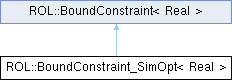 Inheritance diagram for ROL::BoundConstraint_SimOpt< Real >:Public Member Functions | |