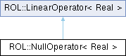 Inheritance diagram for ROL::NullOperator< Real >:Private Member Functions | |