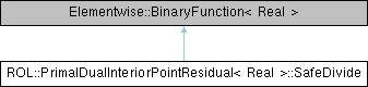 Inheritance diagram for ROL::PrimalDualInteriorPointResidual< Real >::SafeDivide:Public Member Functions | |