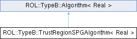Inheritance diagram for ROL::TypeB::TrustRegionSPGAlgorithm< Real >:Public Member Functions | |