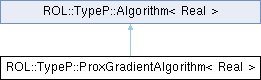 Inheritance diagram for ROL::TypeP::ProxGradientAlgorithm< Real >:Public Member Functions | |