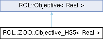 Inheritance diagram for ROL::ZOO::Objective_HS5< Real >:Public Member Functions | |