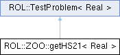Inheritance diagram for ROL::ZOO::getHS21< Real >:Public Member Functions | |