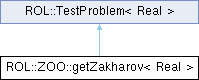Inheritance diagram for ROL::ZOO::getZakharov< Real >:Public Member Functions | |