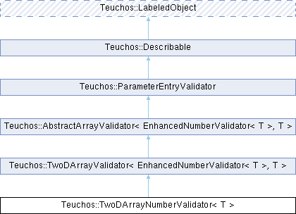 Public Member Functions inherited from Teuchos::TwoDArrayValidator< EnhancedNumberValidator< T >, T > | |
